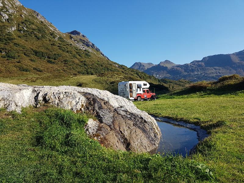 Abends stehen wir am Flexen - Pass.