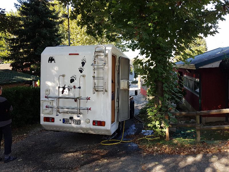 quer durch die Po-Ebene, abends auf Campingplatz, Wäsche waschen, Wasser bunkern, Entsorgung. |